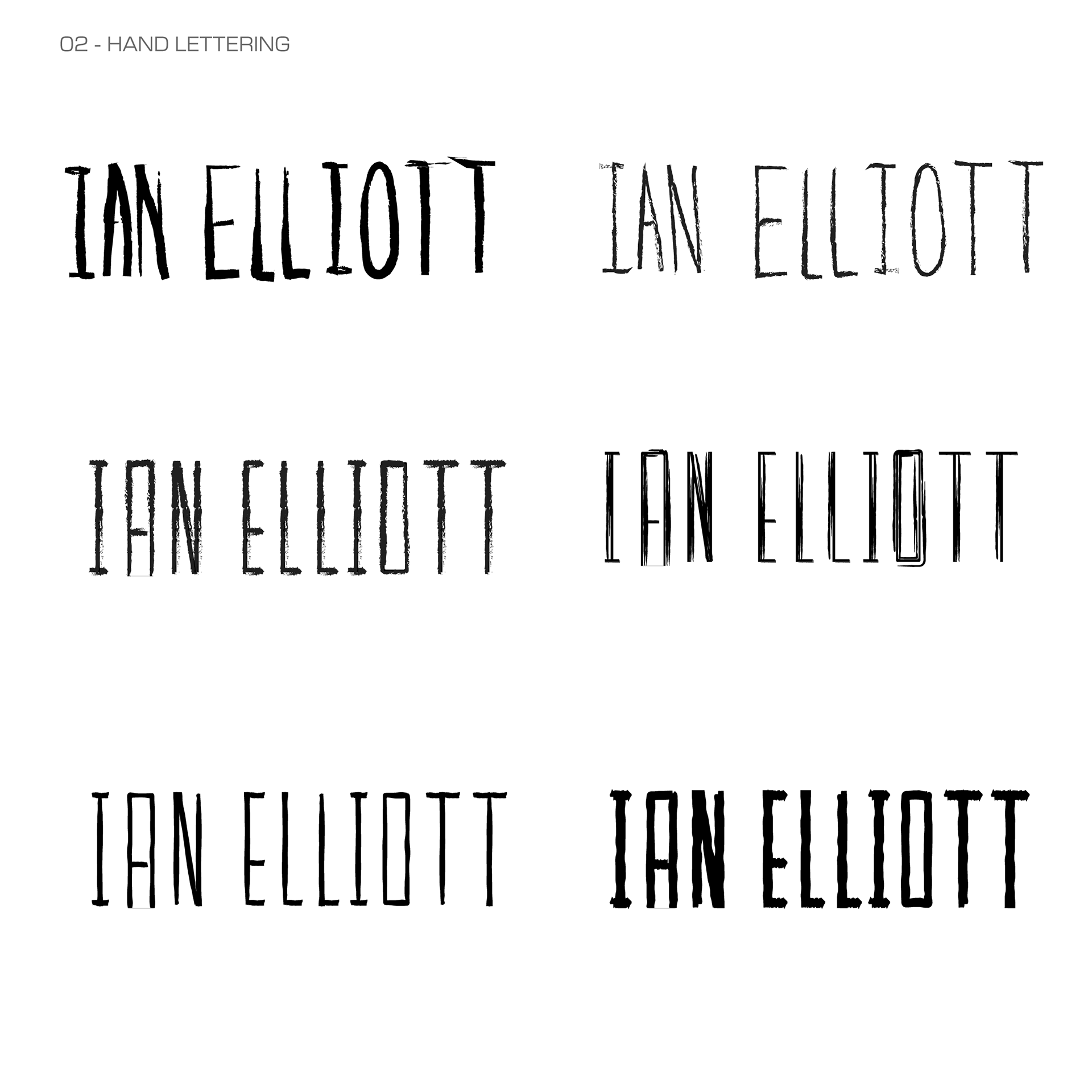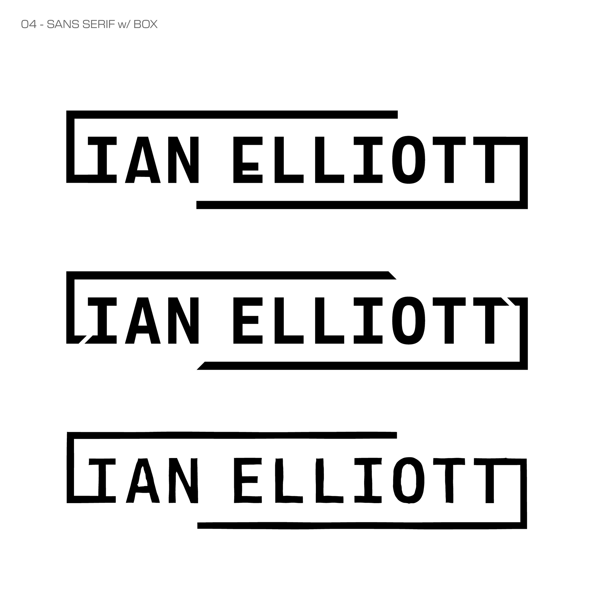 The beginning phase of this lettering design was the longest. Starting with common fonts, I began playing with spacing (should the letters be stacked? Left-aligned? Interacting or separate?) and shapes. Considering this name - Ian Elliott - has so many straight lines and edges, I wanted to see if, for one, the letters could fit under/into the letters next to them in a pleasing manner, and two, what kinds of shapes they could create. The client requested a font-driven logo without bells and whistles, but this stage of play is usually where I find a spark.