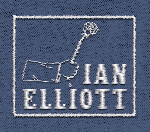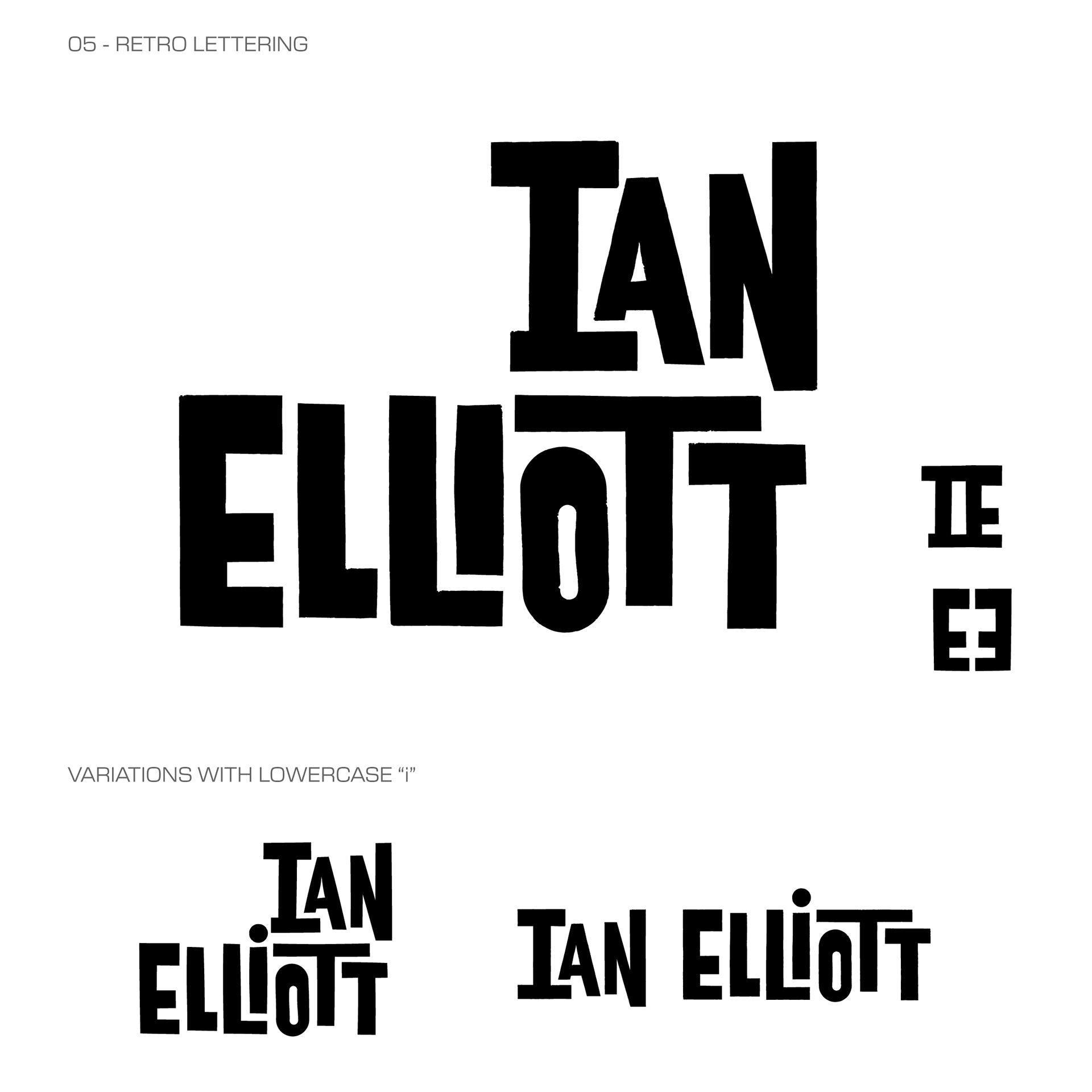 Variations on the design include one with the dot of the "i" in "Elliott" that sites nicely tucked next to the top row of the stacked letters as well as an in-line version.