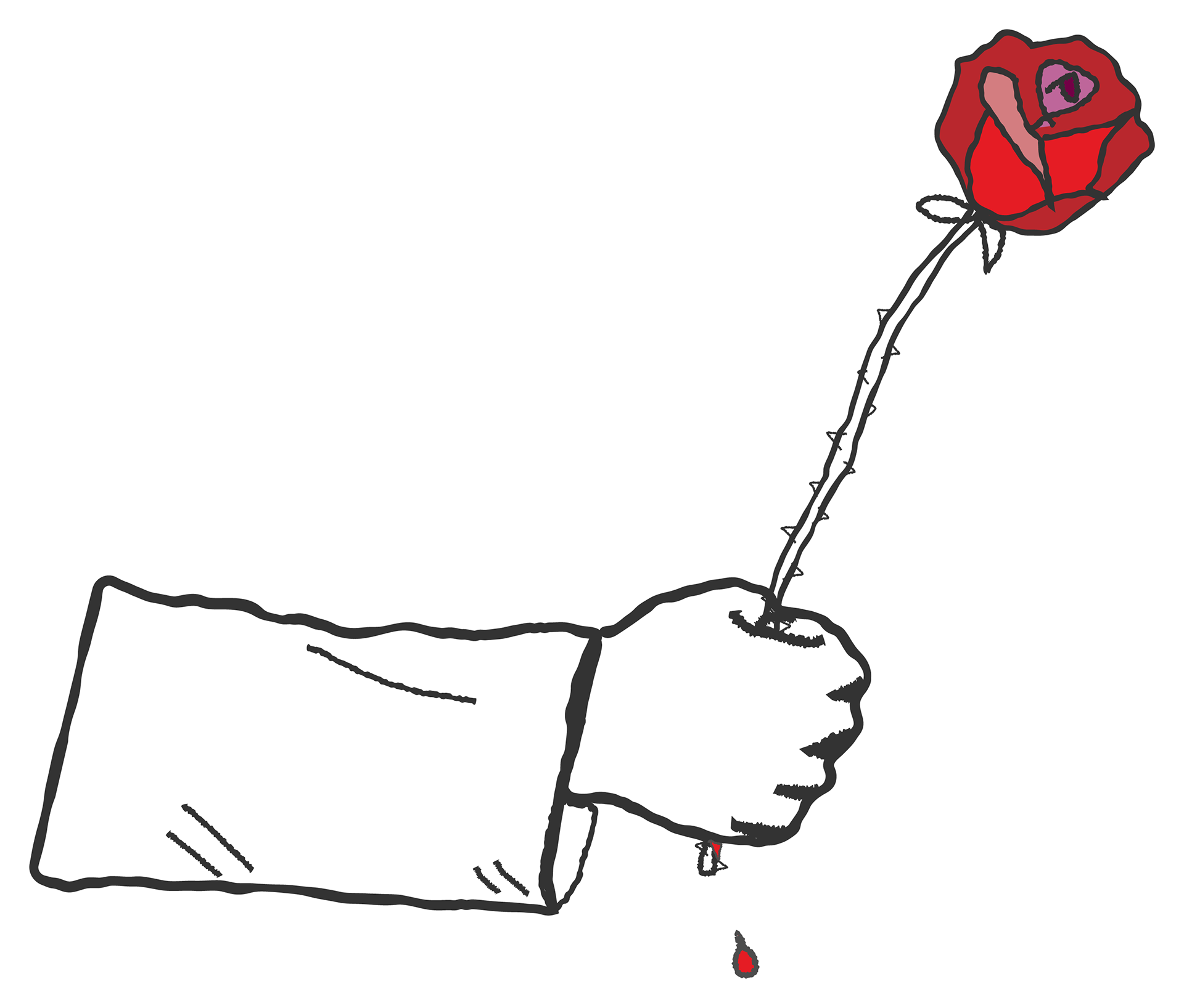 Inspired by the imagery in Ian's recent music video (with a common theme of hands holding flowers and how painful love can be), I created an emblem of a hand holding a rose that's dripping blood from the thorns to use on some mockups. This emblem - sometimes shortened to just the head of the rose - became a great visual for Ian's identity. "A strong hand clasping a flower" is a perfect encapsulation of Ian's identity; strong but tender. Above are different variations, one only outlined with the rose in color and another in grayscale.