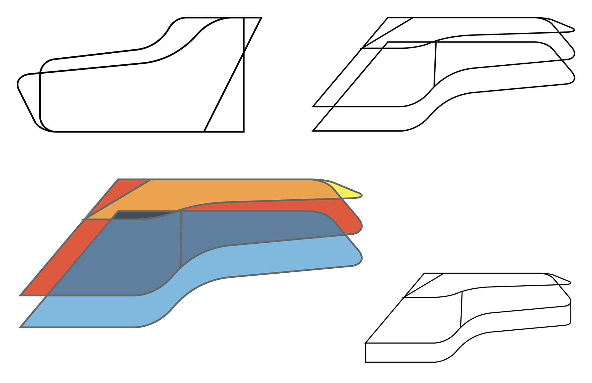 The sketching phase of this project was a whirlwind. I started with a simple outline of the lid of a grand piano - luckily as a longtime pianist I'm very familiar with the instrument - and started skewing and layering these outlines to see if something abstract would stand out (heavily inspired by the concepts behind the MIT Press logo by Muriel Cooper and the MIT Media Lab logos by Pentagram). I started coloring in layers to study how they interacted and what new shapes they created together.