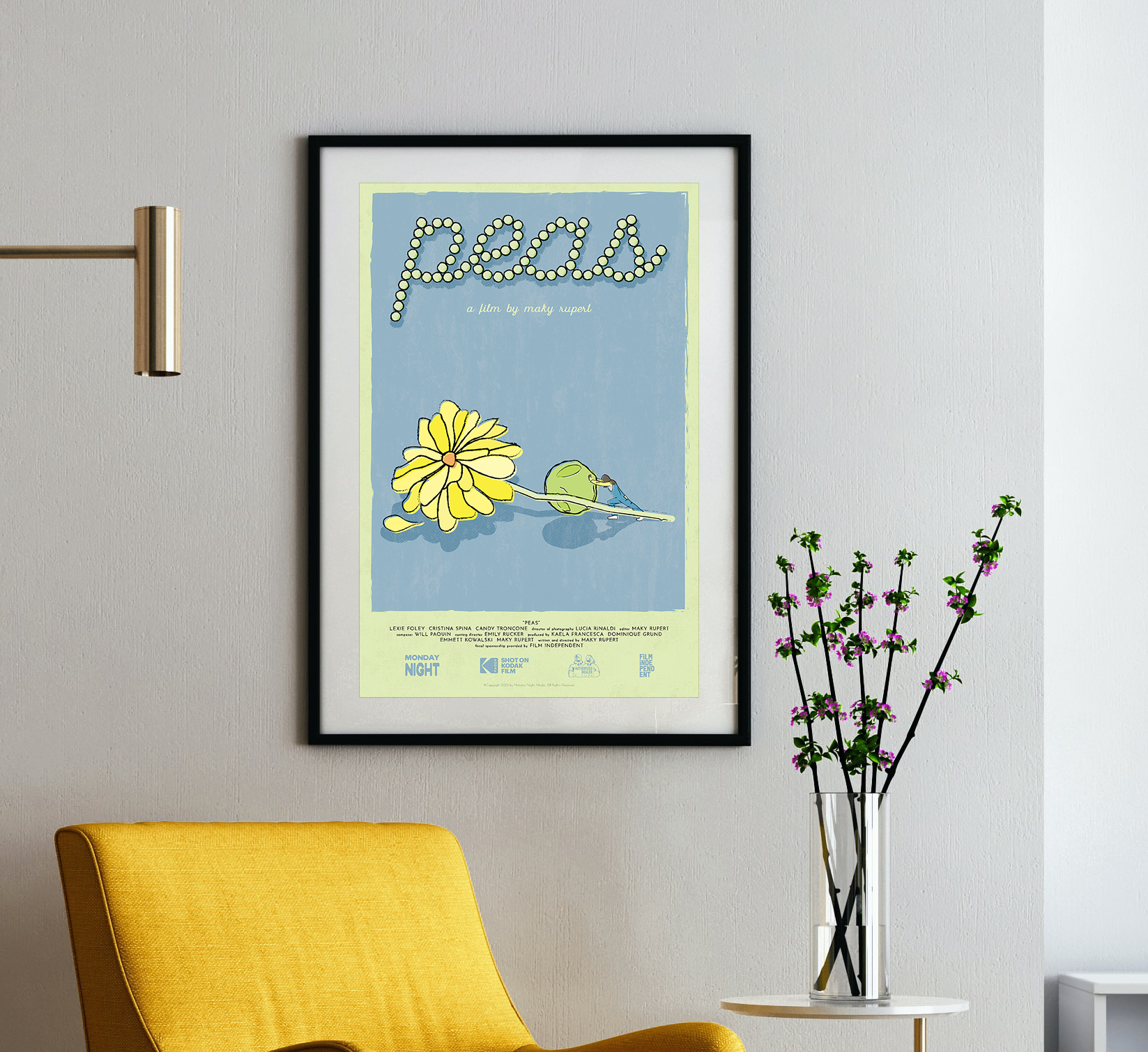 The title treatment included all slightly varied peas with no period at the end, and shadows were added to bring more dimension to the piece. Light paper textures gave life to the illustrations, and additional textures were placed only in the shadows to help them pop.